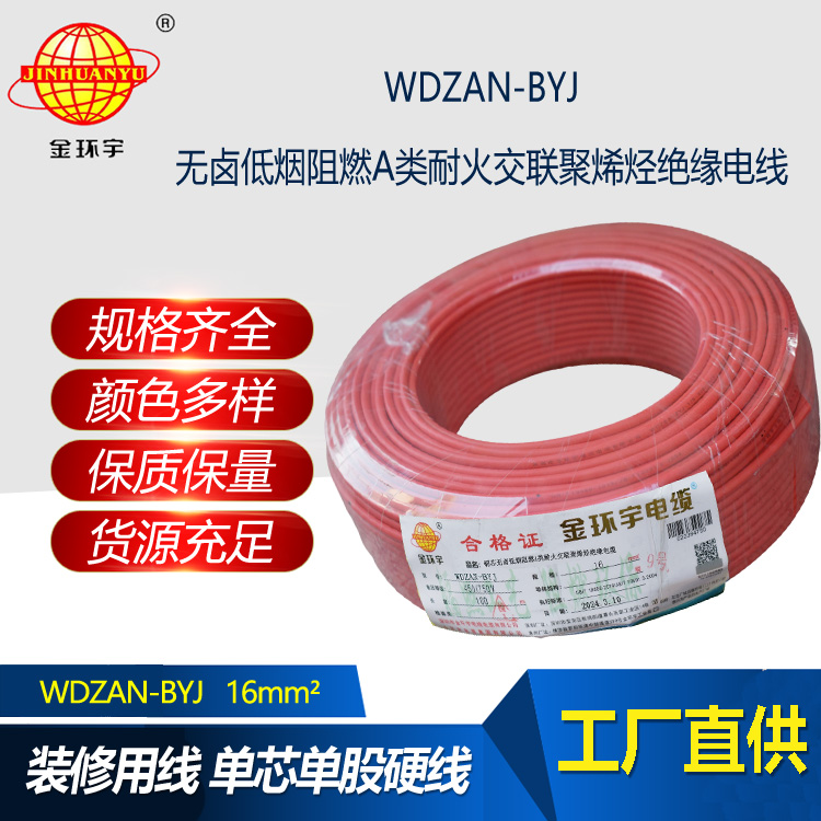 WDZAN-BYJ:即為銅芯無鹵低煙阻燃A類耐火交聯聚烯烴絕緣電線,是指電線的絕緣層材料鹵素物質,在燃燒的情況下,不釋放含鹵氣體,煙霧濃度低,參照標準為JB/T 10491-2004,型號有WDZAN-BYJ、WDZBN-BYJ、WDZCN-BYJ等,