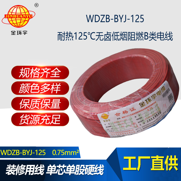 尊敬的客戶,我們榮幸地為您推薦深圳市金環宇電線電纜有限公司生產的WDZB-BYJ-125低煙無鹵阻燃電線,這是一款耐熱125℃、無鹵低煙阻燃B類交聯聚烯烴絕緣電纜。它的特點在于更加安全可靠,同時還能夠節能環保,是一款極具專業性的電線。