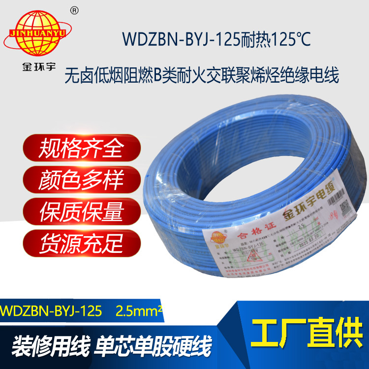 WDZBN-BYJ-125:即為低煙無鹵阻燃B類耐火電線,是指電線的絕緣層材料鹵素物質(zhì),在燃燒的情況下,不釋放含鹵氣體,煙霧濃度低,參照標(biāo)準(zhǔn)為JB/T 10491-2004,型號(hào)有WDZAN-BYJ-125、WDZBN-BYJ-125、WDZCN-BYJ-125等,