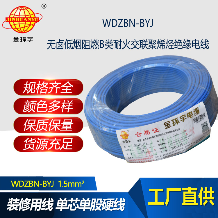 “WDZBN-BYJ”為銅芯交聯(lián)聚乙烯絕緣無鹵低煙B類阻燃耐火布電線。
