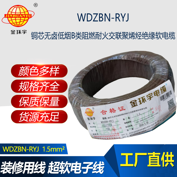 WDZBN-RYJ電纜:全稱B級阻燃耐火低煙無鹵交聯聚烯烴絕緣布電線,執行標準GB/T19666-2005。