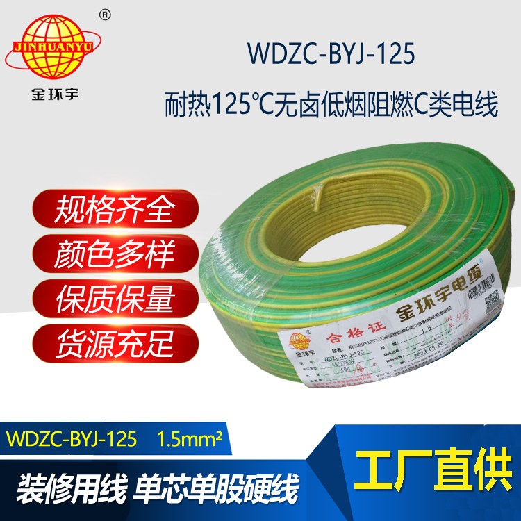 WDZC-BYJ-125℃全稱為耐熱125℃無鹵低煙阻燃C類交聯聚烯烴絕緣電纜;符合解釋說明:WDZ表示低煙無鹵阻燃;C代表C類阻燃;B代表布電線;YJ表示交聯聚乙烯;