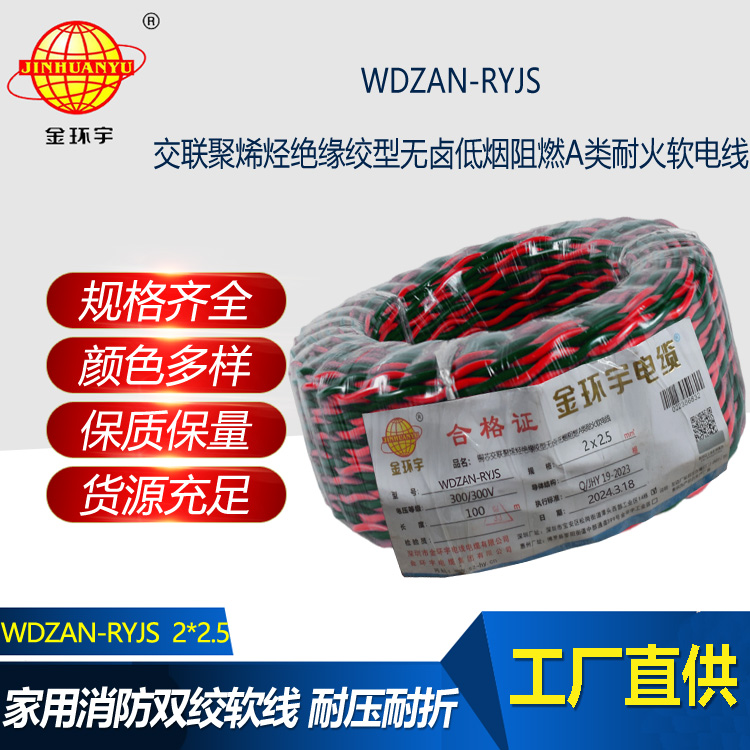 WDZAN-RYJS:低煙無鹵交聯聚烯烴絕緣a類阻燃耐火雙絞線;是消防用低煙無鹵阻燃耐火聚烯烴絕緣連接軟線是參照GB/T5023-2008等標準制訂的,其耐火特性符合GB/Tl9666類的要求。