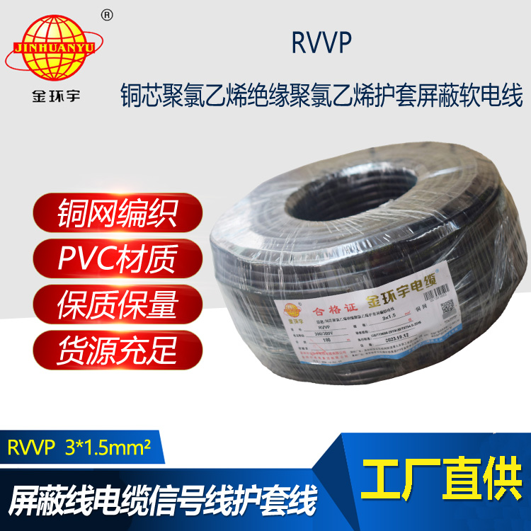 “RVVP”絕緣銅編織聚氯乙烯絕緣聚氯乙烯護套線;RVVP是一種軟導體PVC絕緣線外加屏蔽層和PVC護套的多芯軟導線。銅芯聚氯乙烯絕緣銅編織屏蔽聚氯乙烯護套軟電纜,又叫做電氣連接抗干擾軟電纜,額定電壓300/300V,線芯常用芯數為2-20芯,常用線芯線徑為:0.5平方,0.75平方,1.0平方,1.5平方,2.5平方。