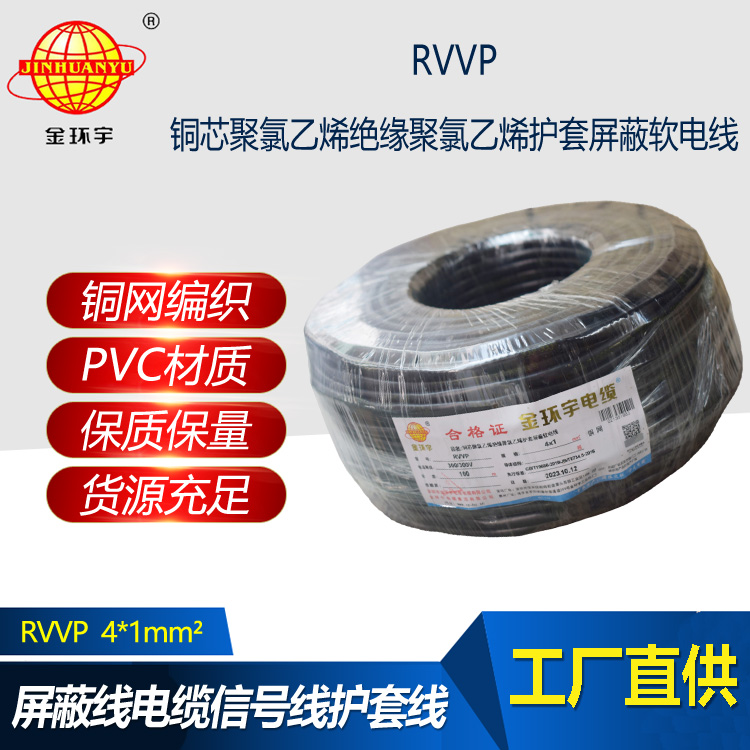 金環宇電線電纜 RVVP屏蔽電纜4x1平方 銅芯信號通訊控制線