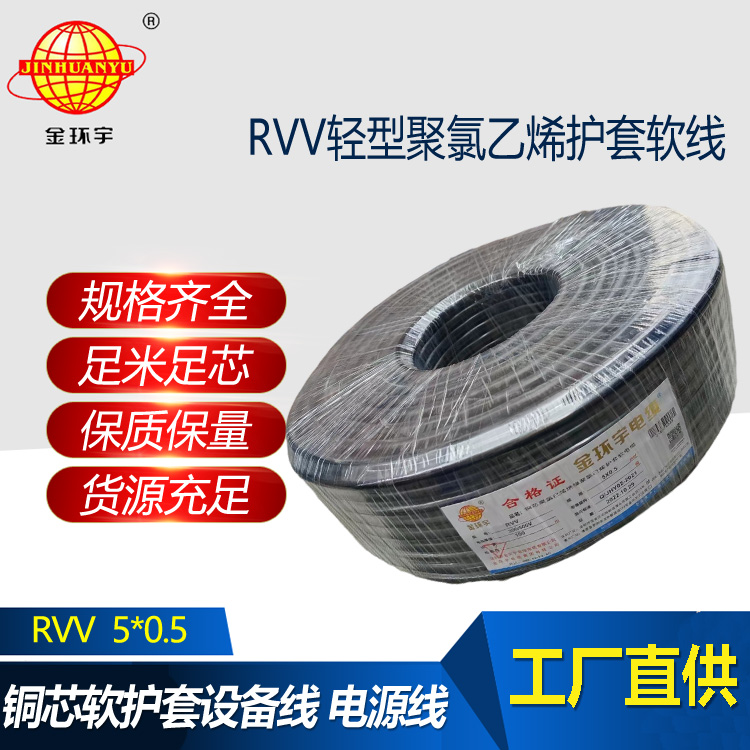 金環宇電纜 深圳rvv電纜 RVV 5X0.5平方 銅芯軟護套電纜
