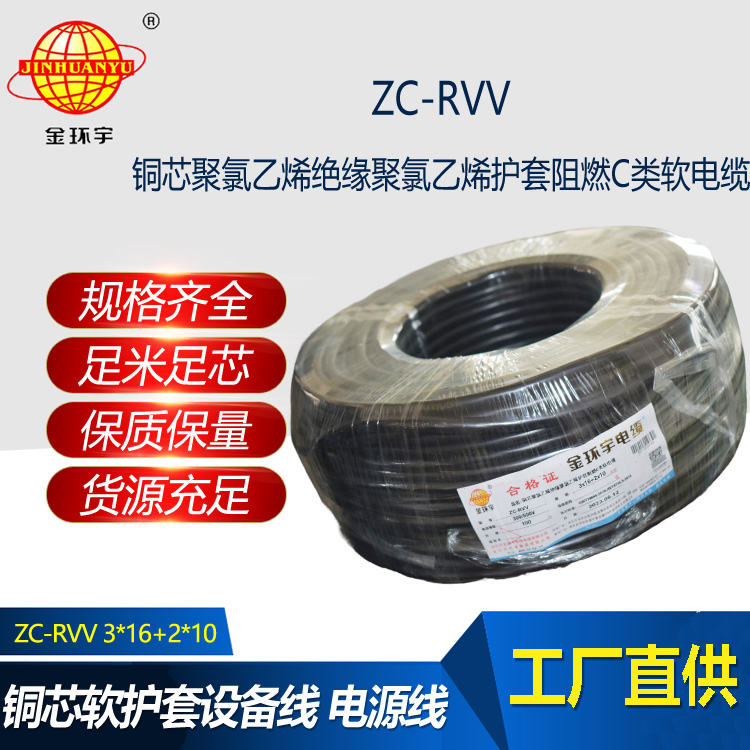 金環宇電線電纜 ZC-RVV 3X16+2X10平方 阻燃電線電纜 五芯rvv電源線