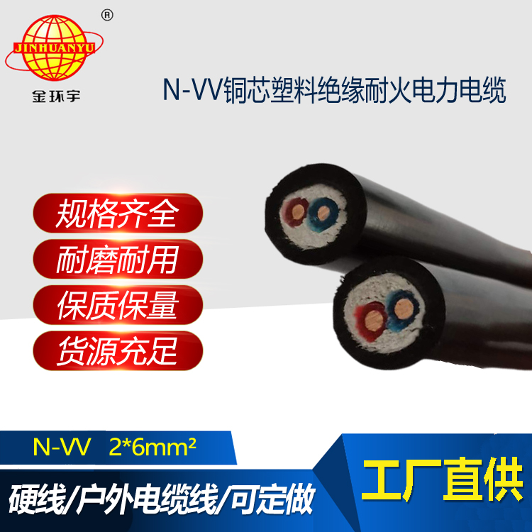 金環宇電線電纜 N-VV 2X6銅芯交聯電纜 2芯vv電纜 耐火電纜