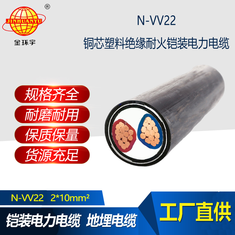 金環宇電纜 深圳耐火鎧裝電纜廠N-VV22-2X10電力電纜vv22
