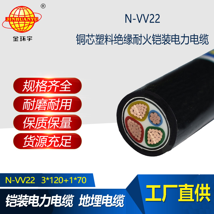 VV22:敷設在室內,隧道及直埋土壤中,電纜能承受壓力和其他外力作用。