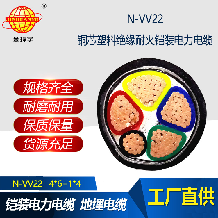 金環宇電線電纜 鋼帶鎧裝電纜N-VV22-4X6+1X4平方 耐火電纜