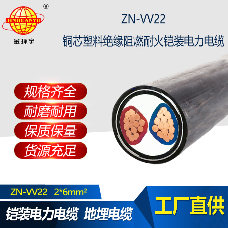 金環宇電線電纜 阻燃耐火鎧裝電力電纜批發價格銅芯ZN-VV22-2X6