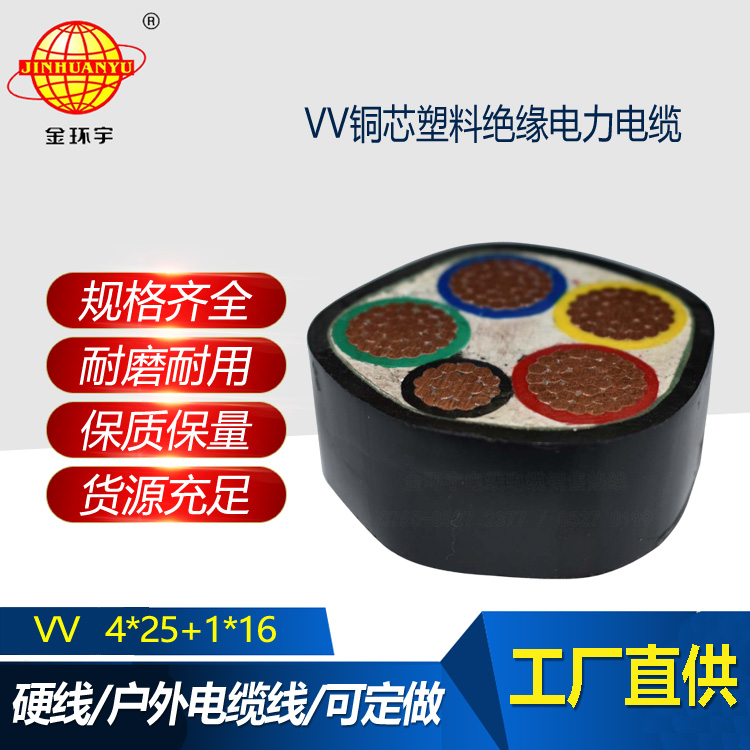 金環宇電線電纜 VV 4x25+1x16平方 5芯電力電纜 深圳vv電纜