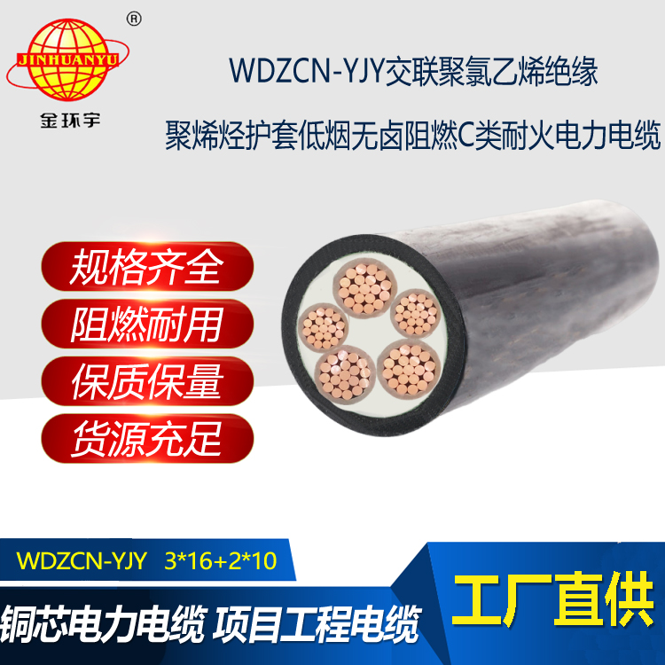 金環宇 低煙無鹵c類阻燃耐火電纜報價WDZCN-YJY 3X16+2X10平方