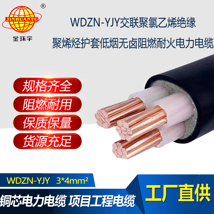 金環宇電線電纜 深圳低煙無鹵電纜廠家 WDZN-YJY 3X4 阻燃耐火電線電纜
