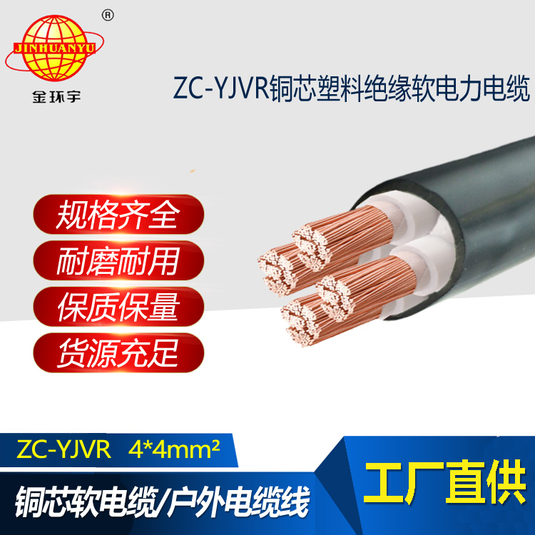 金環宇電線電纜 yjvr軟交聯電纜ZC-YJVR 4X4平方 4芯阻燃電纜