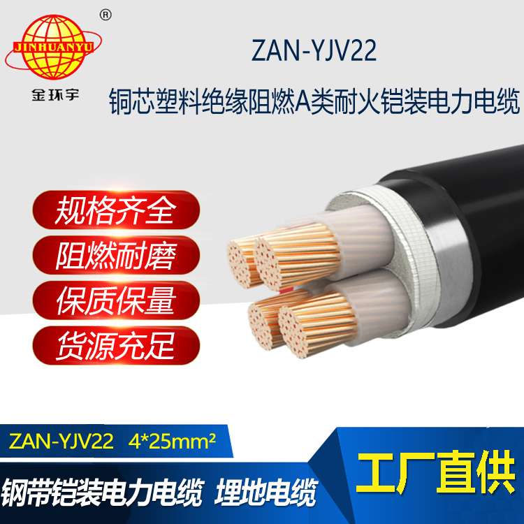 金環宇電線電纜 銅芯電力電纜 ZAN-YJV22-4X25平方 a類阻燃yjv22 耐火電纜
