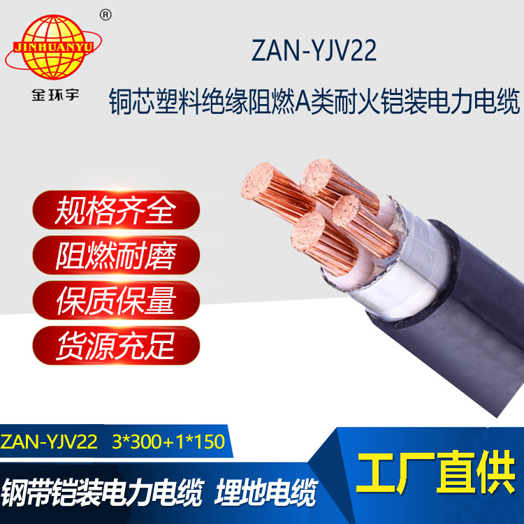 金環宇電線電纜 阻燃鎧裝電纜yjv22阻燃A類電力電纜ZAN-YJV22-3X300+1X150