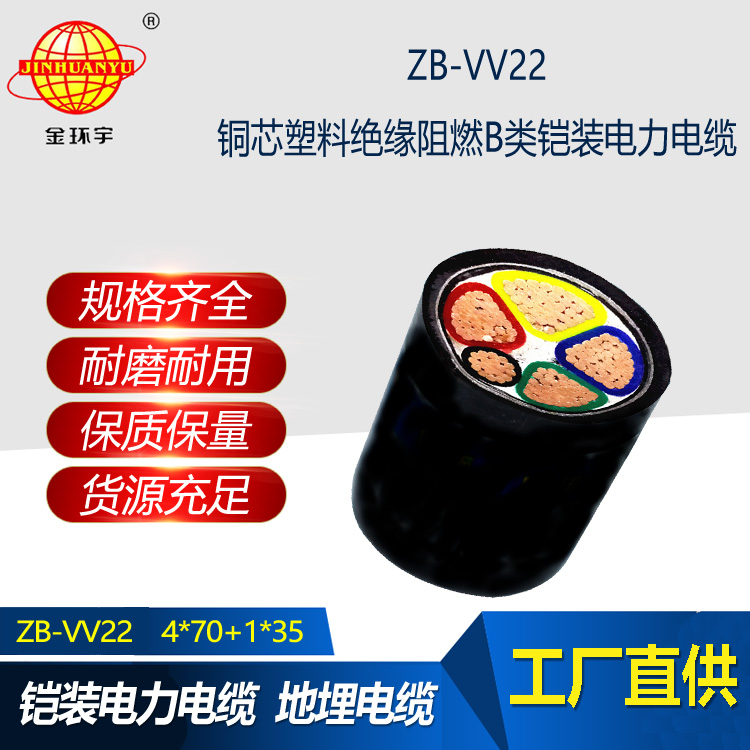 金環宇電線電纜 ZB-VV22-4X70+1X35平方 阻燃鎧裝電纜vv22電纜
