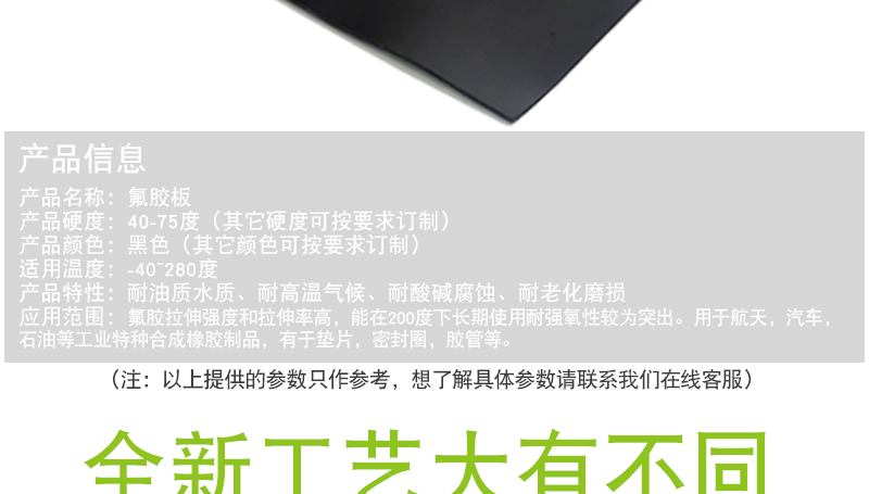 氟膠板具有耐油、阻燃、耐高溫、耐化學腐蝕性能和抗老化性能,也是橡膠中最重的橡膠。
